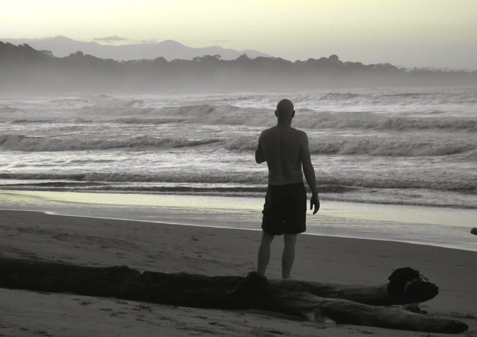 The sun’s setting now. This afternoon we rented surfboards just northwest of Puerto Viejo. The beach is called Playa Negra, which means black beach and they’re not kidding. The beach is all black because the sand is made of basalt, a.k.a. pulverized volcanic lava. The dark granules soak up so much heat, they scald your bare feet on your way down to surf.