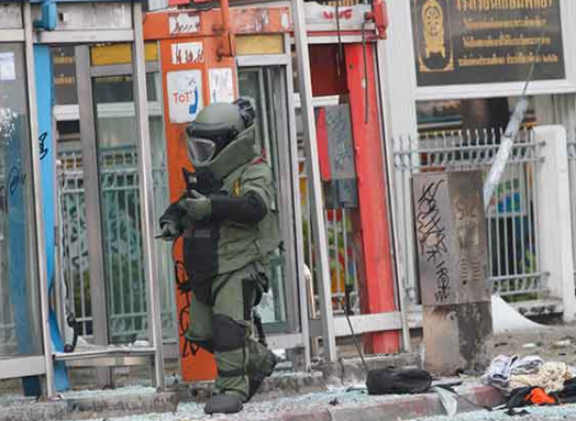 According to this local news story, at 2pm today an Iranian man hurled a bomb at Thai police officers on a street called Sukhumvit 71, outside Kasempithaya School. Unfortunately, the man must be a terrible thrower (either that or Fate decided to give him a really really bad day), because the bomb hit a tree, bounced right back at him, and exploded. Five people were injured, including Our Favourite Bomb Throwing Suspect #1. Truly an awful afternoon for him and the people around him.