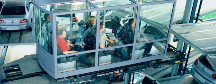 See-through parkade elevator, Wolfsburg, Germany. Photo: Volkswagen.