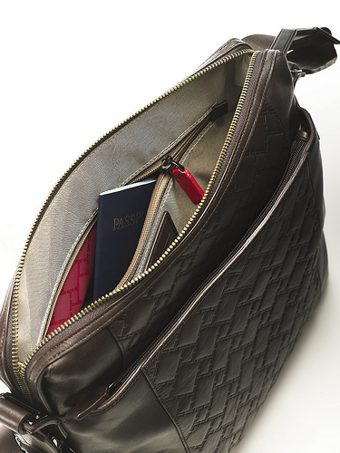 Tumi calls this their ID Lock™. Simply stow your passport, credit & debit cards inside these red pockets, and the metal threads will block any signals sent by scummy identity thieves.